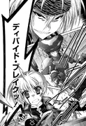 Thoma demands to know whether Veyron was the one who killed the nuns and destroyed his village on Vaizen. Instead of answering, Veyron attacks but Thoma displays unexpected fighting proficiency with his Divider. Surprised, Veyron breaks off and asks why Thoma "stole" the Divider, to which Thoma replies that he only wanted to save Lily. Veyron mocks him for being unaware of what's really going on, enraging Thoma, who proceeds to activate the Divider further and attack him. However, Veyron overpowers him and badly burns his left arm, in passing admitting that he was among those responsible for the destruction on Vaizen. After the last desperate attack, Thoma is left motionless and defenseless but Veyron spares him when Isis arrives, saying he is out of ammo. He then leaves, introducing himself as "Veyron of the Hückebein Family" and saying that Thoma's "life and his Divider" are in his hands for now.