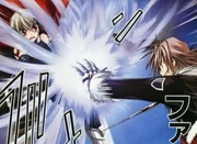 Aboard Esquad Hückebein, Fortis of Hückebein and DeVille of Hückebein explain to a restrained Thoma the truth about the Eclipse virus and offer him an invitation to join the Hückebein family. Fortis give Thoma a more time to think about it, but during Special Duty Section 6's subsequent boarding attack of Esquad, the Bible of Silver Cross breaks his bindings and releases him. In an attempt to stop the battle, Thoma releases a powerful Zero Effect blast, which disables most of the combatants on the ship. He then locates Lily and Isis, though the Bible, which had gone into automatic defense mode, knocks them both unconscious using a Zero Effect due to it considering them a threat. Thoma brings the two to SDS6 officers and asks them to help the girls, not realizing that he is talking to Subaru because his vision is distorted by the Eclipse.