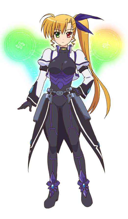 Genetically, Vivio is the last in the line of Heiliger Kaisers of Ancient Belka, meaning that her physical and magical capacity is superior to most modern mages. In StrikerS, she is able to go toe-to-toe with Nanoha herself after her body is powered with a Relic and forcibly aged to its peak condition. She is shown to have flight abilities and her attacks are very powerful, as her punches were strong enough to shake the Saint's Cradle. She also then possesses the Saint's Armor, which provides her a powerful AMF to protect her from incoming magic attacks. Her defense alongside with her powerful physical strength allow her to break Nanoha's binds with raw power. After the JS Incident, Vivio apparently begins to learn magic from scratch at the academy.